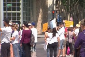 在市長Sam Liccardo告訴抗議者要麼戴上口罩、要麼被護送出去時,一些人開始發出噓聲。