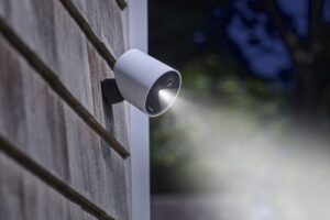 這款1080p HDR視頻攝像頭帶有8倍數碼變焦,配140度「超寬」鏡頭。它安裝在一個簡潔的黑白外殼內,可晝夜工作。內置聚光燈和紅外夜視儀輔助夜間監控和記錄。