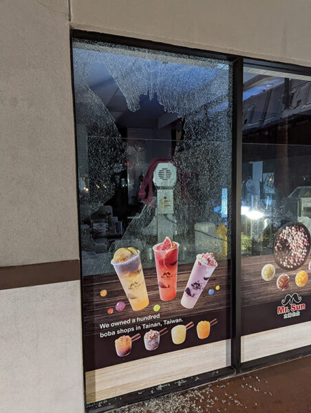 在Fremont的 Mr.Sun 奶茶店在短時間內被砸了4次,店主Meng描述破壞頻率為一週兩次,一個月3次,兩個月4次。修玻璃窗的費用就超過數千元。隔壁的Bruster’s Real Ice Cream被砸了2次,冰品店主乃主流人士,開張才7個月,無奈地看這用木板封起的窗口,告訴記者歹徒是駕車用氣彈槍一路射擊。看來作案動機並非掠財,而是發洩。Weddings And Dreams是拐角的菲律賓婚紗店,因座落corner lot,6片落地大玻璃簡直成了砸店樂園。店主回憶自2020年8月起至今,驚人的6次破窗記錄已導至保險公司致函表明勒令停保。婚紗業主另尋保險公司,因被標誌為“極高風險”族群,保費十分驚人。不止是建物,甚至員工停車場的汽車也無幸俛。記者在附近不到方圓1哩內的商場做了實際勘查,結果令人驚訝,有超過15家的商家被砸,都暫時用木板遮起來繼續營業,至於那些已將破損玻璃修好換成新玻璃的受害商家還不知有多少。