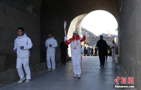2月3日上午,北京冬奧會火炬“飛揚”在像徵“民族之脊”的北京市延慶區八達嶺長城傳遞。當象徵著光明、團結、和平、正義的奧運火種與蘊含著中華民族古老文明的長城相遇,一場中國式浪漫隨之開啟。