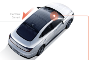 新的Hyundai Sonata混合動力車在車頂上,安裝了太陽能發電板。據其表示,只要在太陽下曬一天,就能每天增加三至四哩的航程。雖然看起來微不足道,但相較於什麼都沒有的其它電動車,這三四哩顯得更有環保意識。