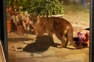 這一事件發生在上週。當時,Bennett Valley一名居民打開她的滑動玻璃門,但沒注意到一頭山獅盯住房子裏的一只邊境牧羊犬。隨後,房主聽到騷動。