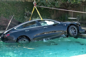 據CHP警員Darrel Horner,週六早7點左右,女子駕車在Point San Pedro向西行駛時,她的Tesla離開道路,沖進Bonnie Banks Way路一處住宅的室外游泳池。