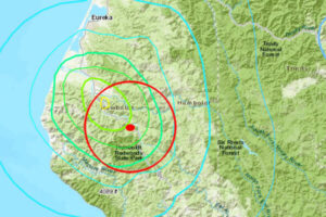 據U.S.Geological Survey,元旦上午10點35分,Humboldt縣Rio Dell東南約9英里(14公里)處發生5.4級餘震。