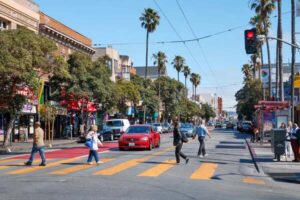 SFPD警員上午8點趕往16th Street和Mission Street ,處理這起攻擊事件。警方表示,受害者拄著手杖行走時,嫌疑人踢掉她的手杖,導致她摔倒在地。