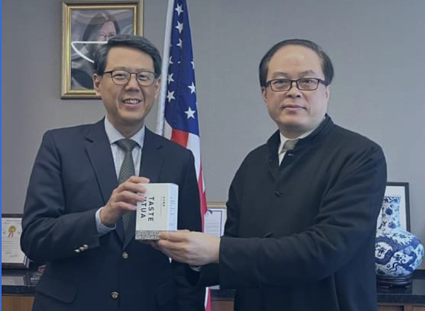 6月5日早上陳志誠校長拜會駐芝加哥臺北經濟文化辦事處,姜森處長偕同李唯誠副處長、洪中明副處長、舒俞敬組長、教育組林逸組長、華僑文教服務中心蔡季穎主任共同於代表處會議室餐敘交流。會談席間姜處長表示,長年來臺藝大於北美、加拿大陸續登場的巡迴交流演出響應熱烈、無不喝采,除了達成文化外交與宣慰海外僑胞的重大意義,亦獲明尼蘇達州的星辰論壇報大篇幅高度評譽報導,各界皆期待未來能更近一步促進國際文化學術交流發展。此外,在其任職外交部歐洲司長期間,即久仰陳志誠校長推動臺歐文化外交的不凡成果,進而期望臺藝大積極投入芝加哥教育合作、藝文活動交流的發展,相談甚歡。