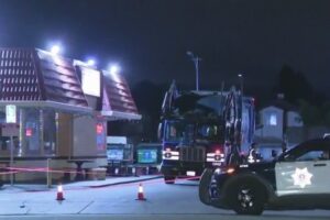 現場視頻顯示,一個大型卡車停在一家便利店旁邊,被犯罪現場封鎖帶圍住。