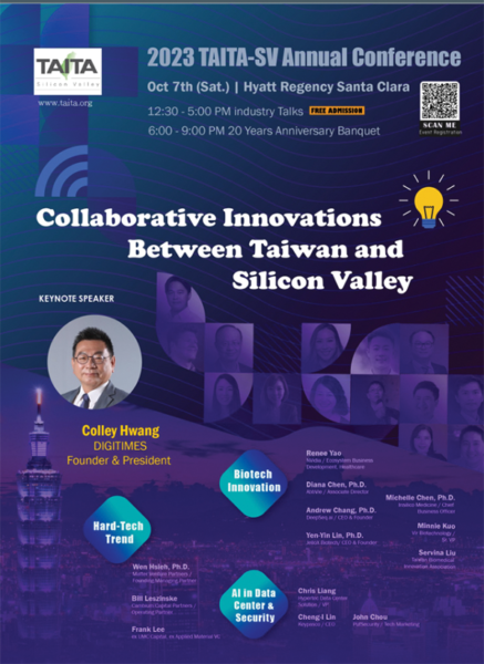 矽谷台美產業科技協會 (TAITA-SV) 即將於2023年10月7日,在Hyatt Regency Santa Clara 隆重舉行第20屆年會。這個協會自2003年成立以來,一直在促進台灣與美國之間的科技和產業合作方面發揮了積極作用。今年是TAITA-SV的第20周年,為慶祝這一里程碑,精心策劃的一系列關於創投投資、生技醫療和科技趨勢的論壇,將於10月7日下午在Hyatt Regency Santa Clara 隆重舉行。