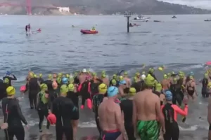 這是San Francisco市第18屆年度Swim Across America活動的一部分。自啟動以來,這項活動已為在Oakland和San Francisco兩地的UCSF Benioff Children’s Hospital籌集了600多萬元。