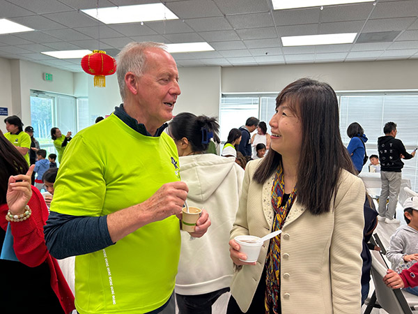 金山灣區僑教中心聯合北加州臺灣華語文學習中心(TCML)小狀元教育學苑12月10日下午於金山灣區文教中心舉辦「臺灣冬至慶美食與文化導覽」活動,透過臺灣冬至介紹常見民俗,搓湯圓、八珍養生湯、八寶粥等實際體驗,以及冬至中醫義診等多元攤位,吸引了超過300名TCML學員及家屬參與,金山灣區文教中心主任莊雅淑、僑務委員呂玉貞、TCML小狀元教育學苑賴淑娜創辦人、陳朝全校長、FUHSD學區委員寇惠風(矽谷中文學校校長)、金山灣區華人運動大會主任委員王進德、北加州工商會會長王若衣等均出席與會。