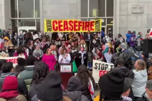 大約200名抗議者參加了全球貿易峰會期間的示威活動。在活動中,他們封鎖了大橋上層通往San Francisco的所有車道,一些司機將鑰匙扔進了海灣。其中數十人被捕,29輛汽車被拖走。抗議者要求Biden呼籲Israel和Hamas之間的戰爭立即停火。