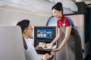 豪華商務艙/商務艙全罩式抗躁耳機及越洋航線豪華商務艙 Moschino、豪華經濟艙 Roots 旅行包等機上服務用品,深獲旅客好評。近期機上影視娛樂系統也全面升級,提供多達 168 部電影、200 部短片影音內容,更與 Max 串流平台合作,強打每月精選影集如《最後生還者 The Last of Us》、《無間警探:闇夜國度 True Detective: Night Country》及《倫敦神探 C.B. Strike: Troubled Blood》等精彩好戲不間斷。