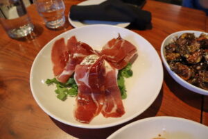 首先前菜小點我們選了義大利熏火腿與布拉塔奶酪,旁邊附上芝麻葉,乾熟成 24 個月的火腿口感相當濃郁,配上爽口的奶酪非常搭。