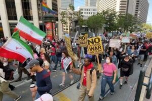 週日,針對Trump政府對伊朗核設施的襲擊,灣區和全國各地發生反戰抗議活動。