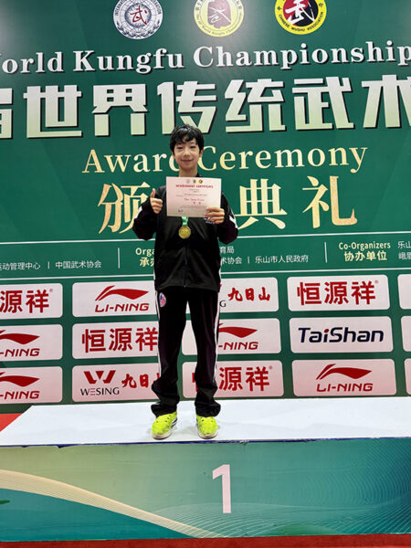 第十屆世界傳統武術錦標賽,李沛澤為美國隊勇奪首金 。