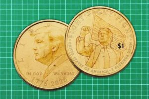 2020年,國會通過由Trump在其第一任期內簽署的兩黨立法,授權財政部長在2026日曆年發行一元硬幣。硬幣設計必須「體現建國250週年」。