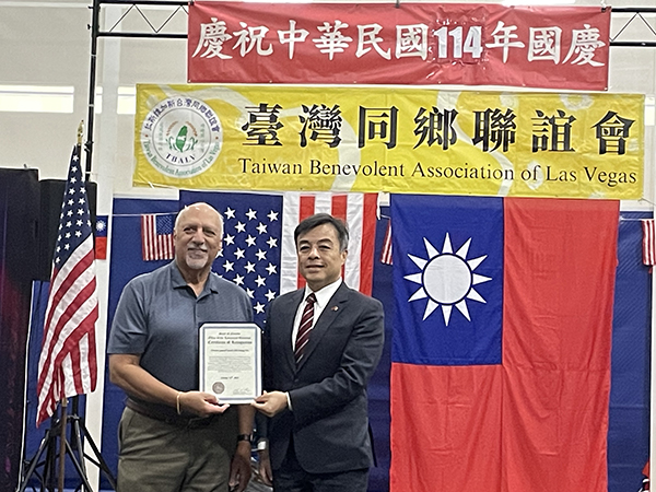 拉斯維加斯臺灣同鄉聯誼會於10月1 2日舉行中華民國114年國慶慶祝大會,當天吸引超過近三百位僑胞參與,駐舊金山辦事處處長伍志翔、金山灣區僑教中心主任莊雅淑、 駐舊金山辦事處張文榮副組長、侯國南副組長亦專程前往拉斯維加斯參與,內華達州副州長Stavros Anthony、拉斯維加斯市長代表、地方法院法官Sunny Bailey、瓜地馬拉使領館代表親臨現場祝賀,表達對中華民國臺灣的支持。