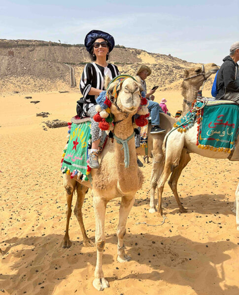 我們在一處沙灘上岸,上得坡來,見不遠處就是山丘。努比亞小哥牽著駱駝幫助我們騎上,便引著我們往山區走去。埃及駱駝可能受虐久了,脾氣不太好,沒事就去蹭前面的駱駝,不聽小哥使喚走得搖搖擺擺,我騎得驚心動魄。山路不好走,只好請小哥趕快回頭,付了小費了事。以往騎駱駝的經驗都很愉快,這次雖然有點被嚇到,幸虧駱駝小哥盡責照顧,並沒甚麼危險。