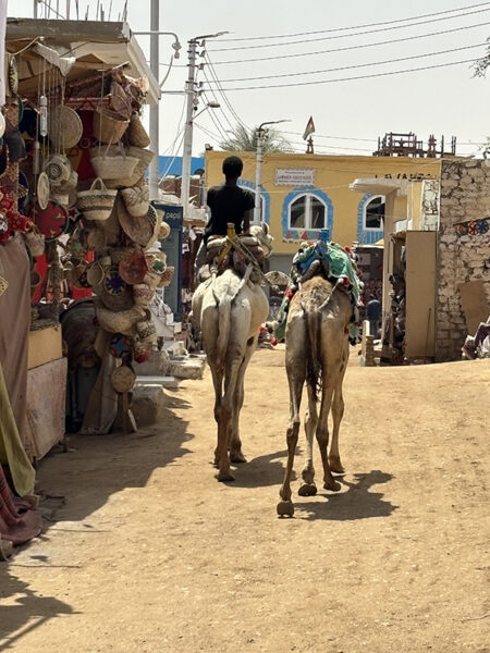 離開奴比亞人家,續逛努比亞村。整條街上都是彩繪屋,五顏六色非常漂亮。道路沒有鋪柏油,全是黃沙路面。村中的交通工具就是駱駝,時見村中男子騎著駱駝在街上走過。我在路旁小店買了洛神花及一些小藝品,店家非常積極的向我推銷其他貨品,旅途中不便多帶貨,他看推銷不動,臉上現出了失望。古老的村落,似乎完全不需要任何科技產品,村中的經濟完全靠觀光業。我暗禱他們生意興隆,希望此地能永保如今這般的閒適安樂。