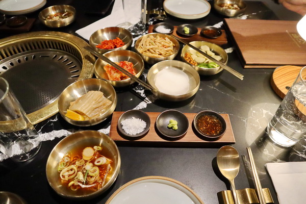 我們一共四個人就選了三到四十的 OHLSO Signature,一共有十盤肉以及可以挑兩款的韓式燉湯,會搭配各種韓式小菜以及生菜沙拉。