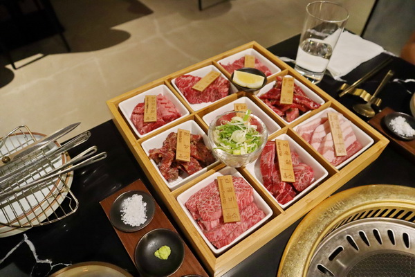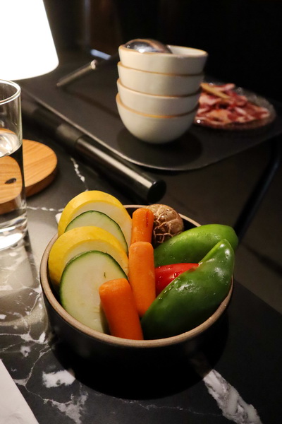 另外還有小黃瓜、節瓜、紅蘿蔔、青椒紅椒與香菇的蔬菜盤,也是由服務生桌邊現烤服務。配上的柚子芥末、大蒜醬與海鹽也都很可口,原本想先點這樣的套餐不夠再加點,不過其實肉品的份量已經相當足夠,四個人吃也非常飽了呢。