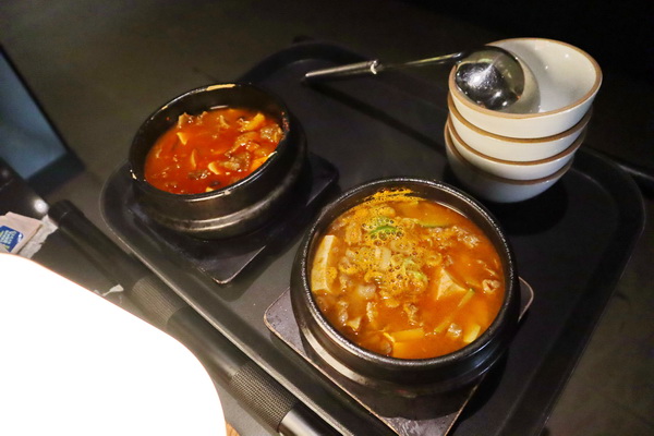 燉湯可以三選二,我們選的是 Doenjang Stew 韓式大醬湯加入豆腐與牛肉,以及微辣口感的 Soondubu Stew 韓式豆腐鍋,同樣加入豆腐與牛肉。另外還有泡菜鍋可以選,會有泡菜、豆腐以及牛肉與豬肉。