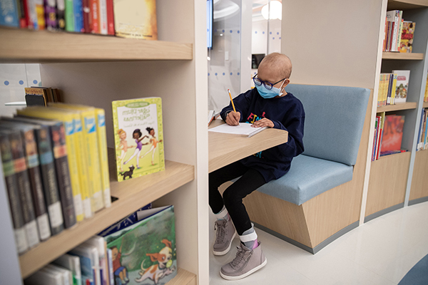 無論治療週期多長,St. Jude 均不向患兒家庭收取任何治療、交通和食宿費用,從而讓他們能夠專注照顧患兒。教育是兒童生活的重要一環,而想象學院則是兒童照護團隊的一員。我們鼓勵患者盡快重返校園,因為這屬於正常的童年活動,能夠提升其幸福感,讓他們對未來重拾信心。