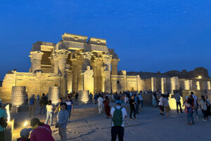 回望神廟,居然也亮起了燈火,此時竟還有遊客前來夜遊神廟。天色很快轉暗,夜空下,神廟恍惚抹上了一層神祕的色彩,更顯巍峨壯麗。            康孟坡神廟裡,處處皆是瑰麗的寶藏。不但讓後人目睹當年工匠的精細雕工,更為古埃及留下了曆法與醫學的證據,記錄了當時的文明。康孟坡神廟匯集古埃及的科學、建築與藝術於一身,堪稱古埃及歷史的活化石。