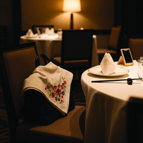 當我們入座時,服務生沒有急著遞上菜單,而是立即注意到我們放在一旁的隨身袋子。他輕柔地將袋子安置在椅子上,然後拿出了一塊繡著精美花紋的布,覆蓋在袋上。我心頭一暖,這不僅是防止上菜時湯水濺污,更像是一種尊重和承諾:「您的所有物品,都受到我們的保護。」這是一種預防性的體貼,是將顧客的擔憂消弭於無形。