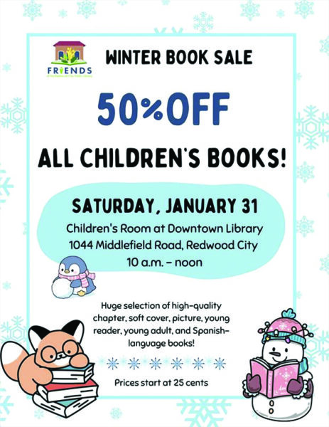 紅木城公共圖書館之友(Friends of the Redwood City Public Library)將於 1 月底舉辦兒童圖書大義賣!