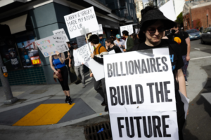 加州正在醞釀一次性5%億萬富翁稅,2月8日,San Francisco就有一場支持加州億萬富翁的反富翁稅遊行。
