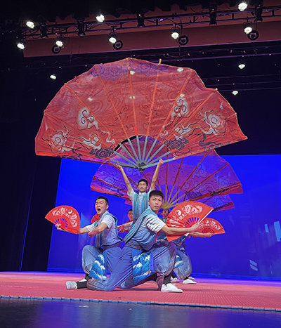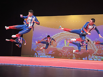 其中,《劍心書韻》曾與成龍合作登上央視春晚舞台, 展現文武合一:毛筆入太極,少年身體90度極限傾斜,盡顯功夫與書法交融之美。《少年中國》亦曾與趙文卓同台演出, 詮釋“少年強則國強”:武術與《少年中國說》誦讀相結合,陽剛之氣盡顯其中。 《天地人和》中,詠春拳對決“中華柱”絕技:少年們在近兩米高柱頂完成前後空翻,乾淨利落,有驚無險!專業精湛的武術功底與精心編排的舞台設計,贏得現場觀眾陣陣掌聲與喝彩聲!