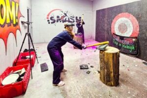 在東海岸開設第一家店後,iSmash迅速發展,它提供包括憤怒室、黑光潑濺染料和扔斧頭在內的不同活動-這些活動在Pleasanton店都可體驗。憤怒室涉及設置物體並用棒球棍等東西砸碎它們,而潑濺室則涉及用戶將染料潑灑在畫布、房間甚至自己身上。