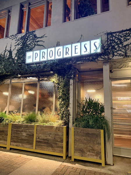 The Progress 是一家舊金山非常受歡迎的新穎美式餐廳,位於日本城附近,開幕於 2014 年。餐廳所在的位置曾經是富有歷史的 Progress 劇院,建造與 1911 年並於 1925 年關閉,後來這個位置經歷了一些餐廳與服裝店的變遷,成為現在的 The Progress。The Progress 自從 2019 年至今,除了 2020 年米其林評鑒暫停一年以外,每年都有榮獲米其林一星的殊榮。