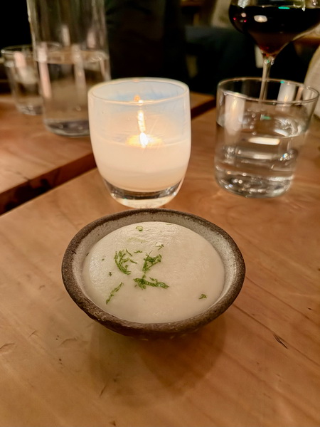 首先前菜我們點了魚子醬馬鈴薯泥,綿密的馬鈴薯泥裡面包著脆脆口感的魚子醬,整體相當開胃。