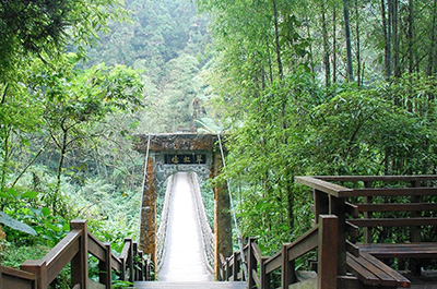 往溪谷中望去,遙見小溪上游有一間小白屋,若真有人隱居在此,那定可不問世事,與世無爭了。迎面又出現一片孟宗竹林,竹影橫斜中一座美麗的吊橋橫臥在溪澗,橋名翠虹橋。