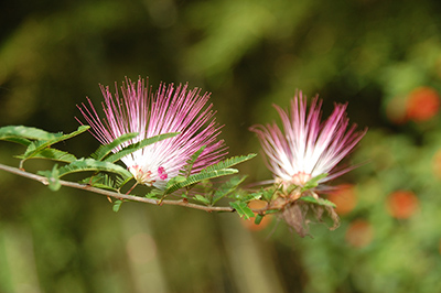 溪頭植被豐富,花草亦多,除了在大學池畔看到的一些品種外,森林步道上常見臨風秀逸的曼陀羅。有一塊林區種有大片的秋海棠,時值秋季,正開滿許多粉嫩可人的小花。水湄溪畔還見到幾株白芙蓉,有單瓣亦有重瓣,花開得潔白如玉,淡雅怡人,正是秋水芙蓉清麗如仙。最美麗的要數飄著淡淡幽香好似羽扇的合歡花,它又恍如枝頭上一顆散發著粉紅色光芒的明珠。閒步於溪頭的森林裡,單是賞鳥看花,已能怡情養性,享受不盡。