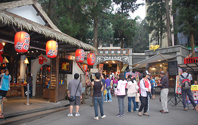 妖怪村裡的建築多為日本風味,店家的屋簷下皆掛有大紅燈籠。屋頂上,大門前多以造型奇特的妖怪玩偶做裝飾。村中遊人如織,甚為熱鬧,若真有妖怪到此,不被嚇跑,大概也會被人捉住了。村中有商店,旅館,餐廳,還有家頗負盛名的久保田烘焙房。遊罷溪頭,走累了山中小徑,到妖怪村吃頓飯逛逛街,倒不失為一處有趣的休憩小站。