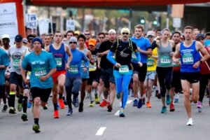 比賽有五個距離:馬拉松(26.2英里);半程馬拉松(13.1英里);10k(6.2英里);5k(3.1英里);Eat. Learn. Play. Kids Fun Run(四分之一英里、半英里或一英里跑道)