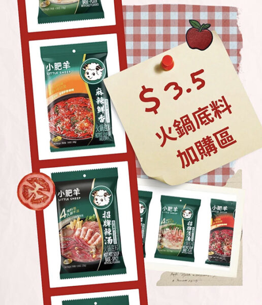 - 小肥羊火鍋底料 $3.5 / 年糕 $1 (買到賺到)